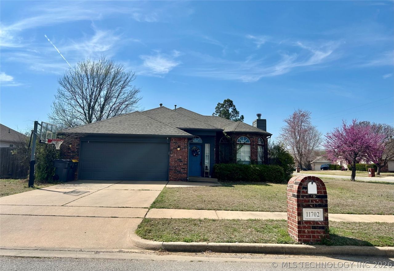 'Beautifully Maintained Home on a Quiet Corner Lot in Churchill Park! Located in a highly sought-after neighborhood close to all the great Jenks amenities! Just steps from neighborhood trails and park. This 3-bed, 2-bath home features a versatile FLEX room (office/den/dining), high ceilings, abundant natural light, and an open-concept layout with wood-look flooring, painted brick Fireplace, and modern lighting. The kitchen offers Granite countertops, updated backsplash, ample cabinetry, pantry, and a coffee/eating bar open to the living area. Spacious primary suite with vaulted ceilings, built-ins, walk-in closet, and private bath with double vanities. Secondary bedrooms are well-sized. Indoor utility room and flexible layout for everyday living. Enjoy a covered patio and large, fully fenced backyard-perfect for relaxing or entertaining. Updates include HVAC & hot water tank (2022), roof approx. 2017, and bedroom flooring (2019). Jenks Schools with easy access to Hwy 75 & Creek Turnpike, minutes from shopping, dining, the Aquarium, and outlet mall. Move-in ready-DON'T MISS IT! *PROFESSIONAL PHOTOS COMING SOON*