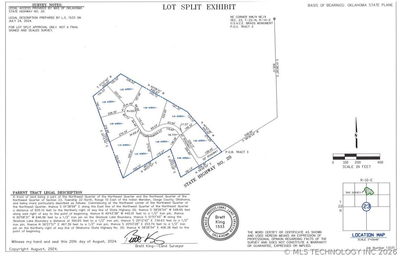 CHECK THIS OUT - 10 TOTAL LOTS RIGHT NEXT TO SKIATOOK LAKE - 1 to 1.59 ACRE LOTS - 11.76 TOTAL ACRES!!! DEVELOPERS / BUILDERS DON'T MISS!! This turn key property is ready for construction. Pending final Osage County approval, all the work has been done to successfully plat and zone this property to be sold as 10 separate lots. The time and effort has been completed to get through the process and let this be your gain. The location is super ideal and lots in the area are selling for a premium. Seller is selling it as a whole after working through the long process of getting this project construction ready. Several lots have views of the lake and the country setting is simply amazing. Many people dream of lake life with room to breathe. Make it happen for your clients and finish the vision. Whether you're a builder, developer, or just ready to create your own slice of paradise, this property is full of potential. Northern lots offer direct access to Corps of Engineers property bordering Skiatook Lake. Close to the City of Skiatook and an easy drive to Tulsa. The land is mostly open with a few scattered trees perfect ideal for building homes. With the lake just moments away, endless opportunities for boating, fishing, kayaking, and soaking up those Oklahoma sunsets are abundant. It's the kind of place where you can slow down, breathe deep, and enjoy. Properties like this don't come along often, especially this close to Skiatook Lake. Don't miss this opportunity. If not interested in developing, no problem, simply own as your private estate.