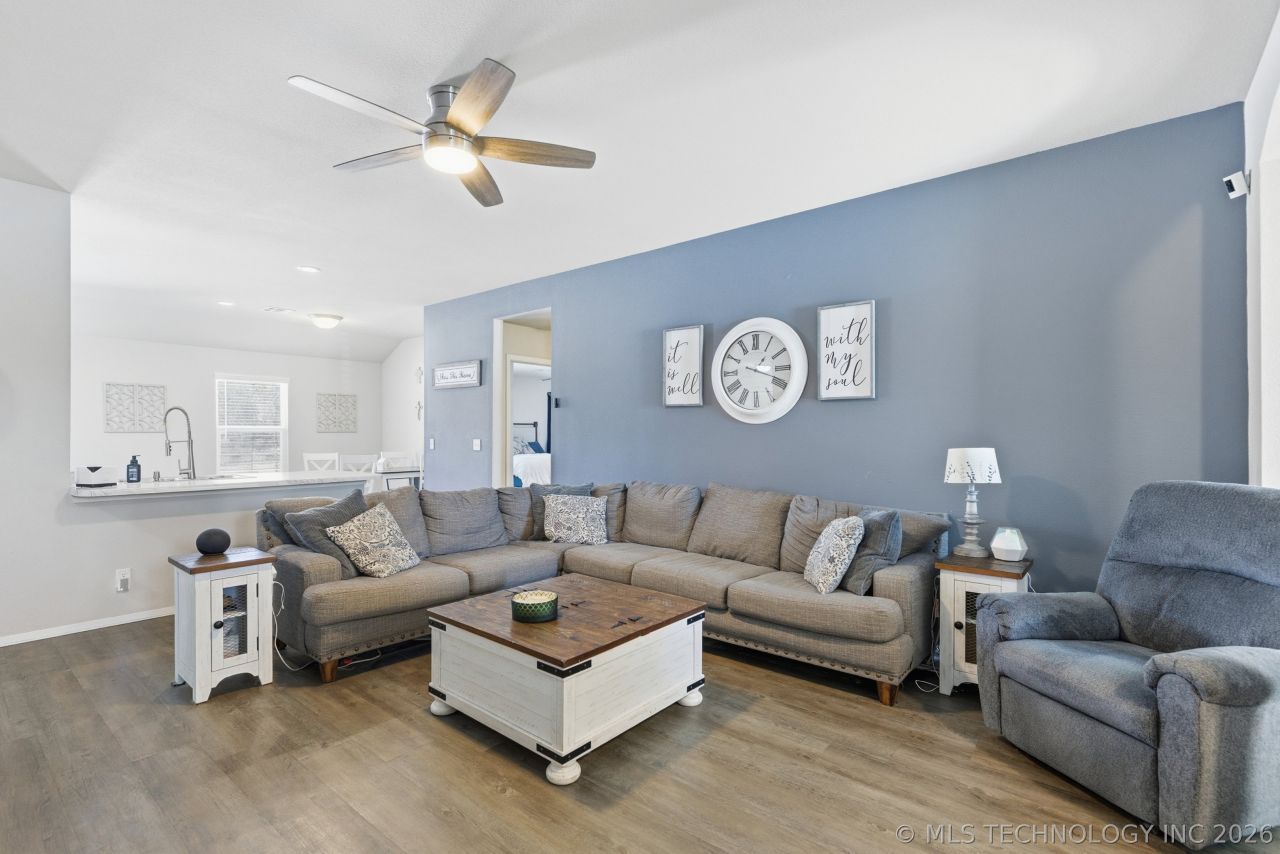 Located on an oversized 0.30-acre corner lot in Conrad Farms, this 4-bedroom, 2-bath home offers space, privacy, and a peaceful natural setting. Outside, a newer wood-link fence enhances privacy and creates an ideal setting for outdoor enjoyment. The property backs to a greenbelt, providing scenic views and frequent wildlife sightings. Inside, the open-concept layout is designed for both everyday living and entertaining, featuring neutral finishes, abundant natural light, and easy flow between the living, dining, and kitchen areas. The kitchen offers white cabinetry, ample counter space, and convenient access to the backyard, creating a seamless connection between indoor and outdoor living. A Nest thermostat enhances energy efficiency, while ceiling fans throughout support year-round comfort. With a functional layout, modern conveniences, and minimal upkeep, this home is well-suited for buyers seeking both comfort and simplicity. Located in sought-after Bixby Schools, with dining, shopping, and entertainment just minutes from the front door.