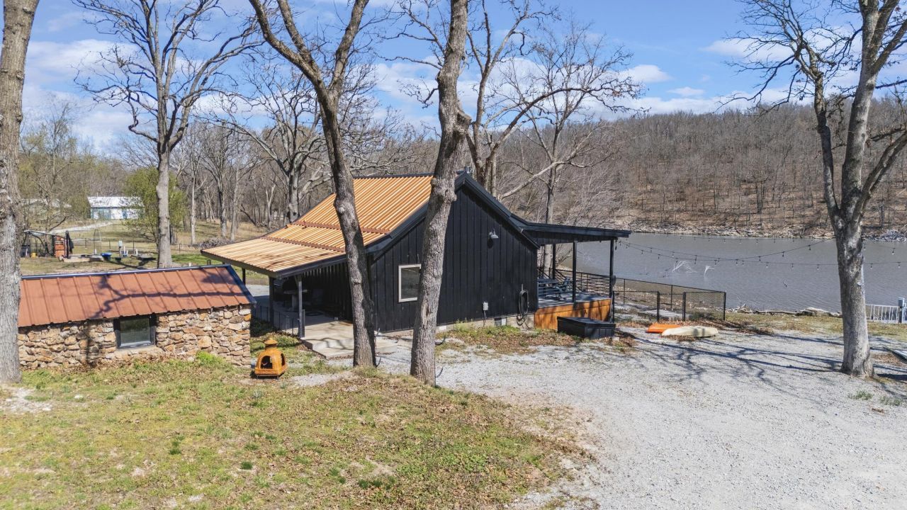 If you've been looking for a lake place with land, water, and a setup that's already done for you, this one checks a lot of boxes. This brand new lakefront cabin in Fairland sits on just over 2 acres with 252 feet of shoreline, giving you space, privacy, and easy access to the water.Inside, the cabin is clean, updated, and ready to go with granite countertops, stainless appliances, luxury vinyl flooring, and a gas fireplace. One bedroom and full bath are on the main level, with a loft bedroom upstairs for additional space. Being sold furnished and currently set up as a short-term rental, it's ready from day one for personal use, income, or both.The dock is already in place with a lift and good water depth, making it easy to get out on the lake whenever you want. The additional rock cabin is finished out with a mini split and works great for guests, extra space, or a storm shelter. The property also includes a shipping container, chicken coop, and a 50x50 shop pad with frame already started, giving you a solid head start on building out a shop or storage space.Strong shoreline, usable acreage, income potential, and a lot already done for you. This one is ready to enjoy.