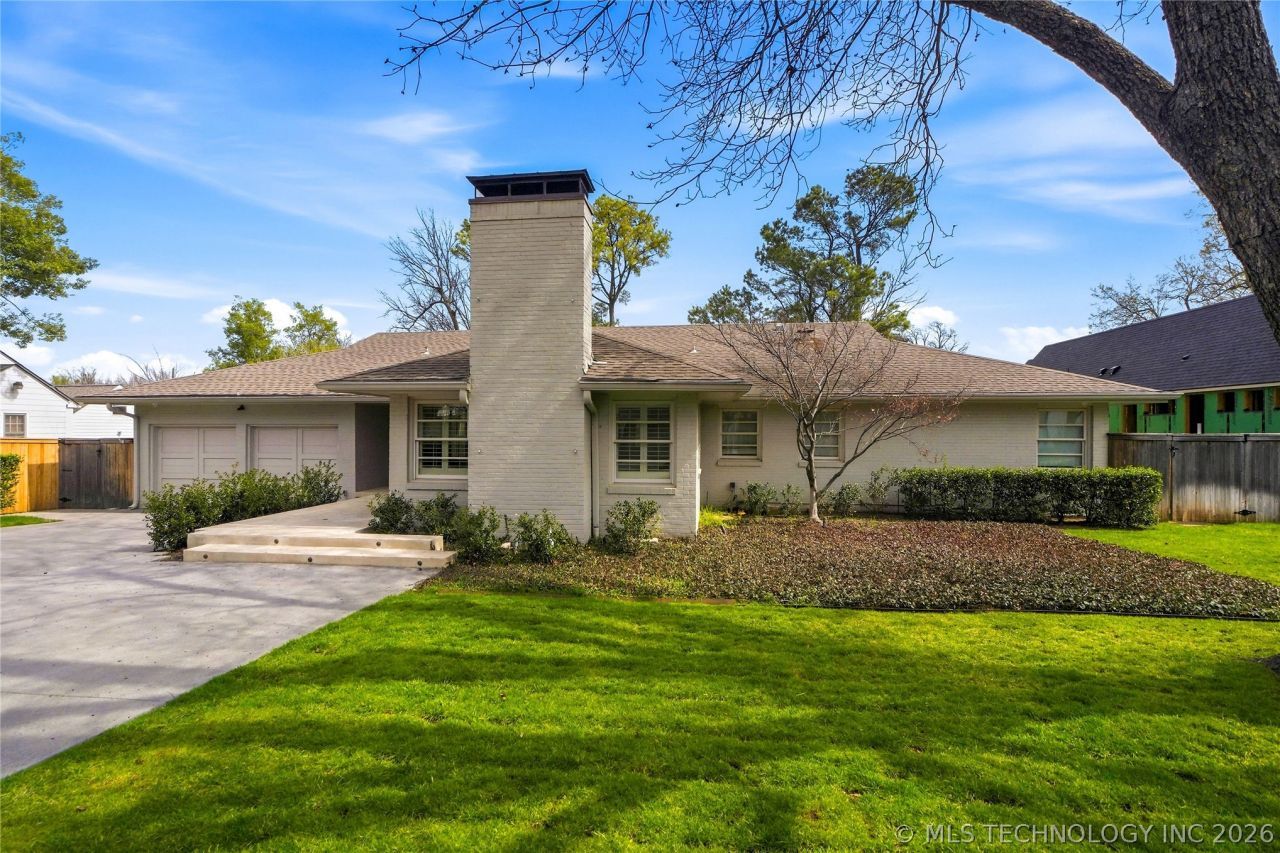 Beautifully, renovated Midtown ranch in the desirable Bryn-Mawr neighborhood! This single-story, full-brick home features a functional floorplan and premium amenities for everyday living and entertaining! The layout includes two open living spaces, both formal and casual dining areas, a spacious kitchen with island seating, a separate back kitchen and laundry with an abundance of built-in storage, a large primary guest suite with fireplace, and two additional bedrooms and three full baths. Fabulous, new pool and spa, and vaulted, outdoor living was designed and built in 2020. New driveway, guest parking, and front porch with custom concrete added in 2024. Remodeled kitchen with Carrara marble countertops, custom cabinetry, 6-burner gas range and double ovens, large sink with window view overlooking the front porch, and built-in desk with bookshelves and storage. Additionally, the separate pantry/bar space includes second, full-size refrigerator and ice maker, and has access to the back patio and pool. The nice size laundry room features a sink, and floor-to-ceiling cabinetry with convenient storage. The vaulted primary suite includes multiple storage closets plus a walk-in closet, a large bath with double sinks and separate jetted tub and shower, gas fireplace flanked by built-in shelving, and private access to outdoor patio. The second bedroom includes private bath and walk-in closet. Hardwood flooring throughout. Enjoy prime location to Utica Square, Tulsa Tennis Club, Monte Cassino School and Cascia Hall, St. John Hospital, and easy access to the Broken Arrow Expressway.